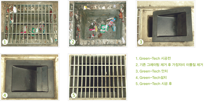 - 예산절감기존의 빗물받이 밑에 시공함으로 설치가 간편하고 예산을 절약합니다.